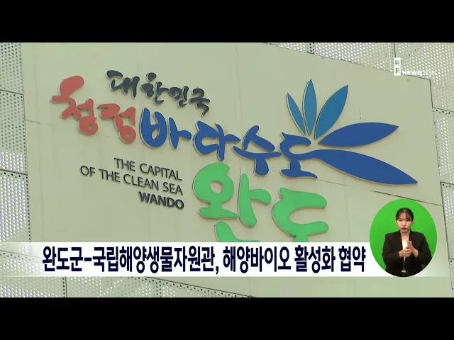 완도군과 국립해양생물자원관은 해양바이오산업 활성화 업무협약을 체결했습니다. 두 기관은 해양바이오산업 활성화를 위한 정보 교류와 연구 협력, 전문 인력 양성, 해양바이오산업 인지도 제고를 위한 전시 프로그램 등을 공동 개발해 활용할 예정입니다.