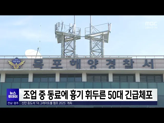 목포해양경찰서는 조업 중 흉기를 휘둘러 동료 선원을 다치게 한 50대 남성을 살인 미수 혐의로 긴급 체포했습니다.해당 남성은 어젯밤(2) 8시쯤 진도군 조도면 인근 해상에서 정박 중인 꽃게잡이 어선에서 흉기를 휘둘러 동료 선원을 다치게 한 혐의를 받고 있습니다.