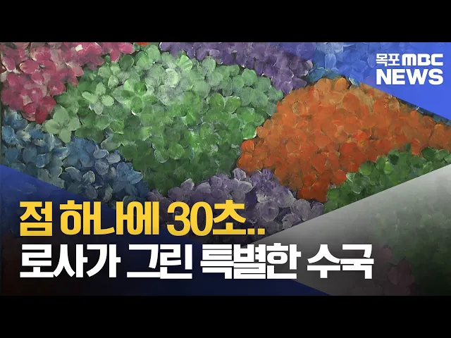 ◀ 앵 커 ▶ 뇌병변 장애인 화가가 2년 동안 그린 수국 그림으로 첫 개인전을 열었습니다.점 하나 찍는데 30초가 넘게 걸린 그의 작품에는 특별한 아름다움과 감동이 있습니다.박수인 기자가 보도합니다.◀ 리포트 ▶수국 그리는 여자, 로사의 수국은 특별합니다.다른 그림에는 없는 간절한 기다림과 소망, 시간이 축적돼 있습...