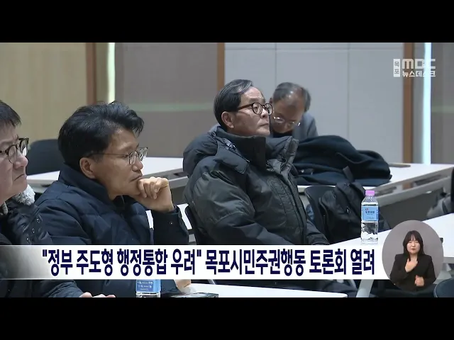 광주*전남 행정통합과 관련한 기대와 우려를 시민 의제화 하기 위한 첫 시민 토론회가 개최됐습니다.오늘(19) 목포시민주권행동 주최로 목포대학교 남악캠퍼스에서 열린 행사에는 박찬영 목포대 교수와 학부생 등 30여명이 참석해 행정통합이 주민 주도가 아닌 '관치에 의한 자치'라는 점에 큰 우려를 나타냈습니다.이어 "...