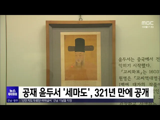조선 후기 대표 수묵화가 공재 윤두서의 '세마도' 진본이 321년 만에일반인에게 공개돼 주목을 끌고 있습니다.'세마도'는 현전하는 말 그림 중 제작 연대가 기록된 기년작이자 가장 이른시기의 작품으로 제작연대와 공재 윤두서의주문인이 찍혀 있습니다.'세마도'는 그동안 학계 논문이나 도록에서일부 이미지로만 소개되며...