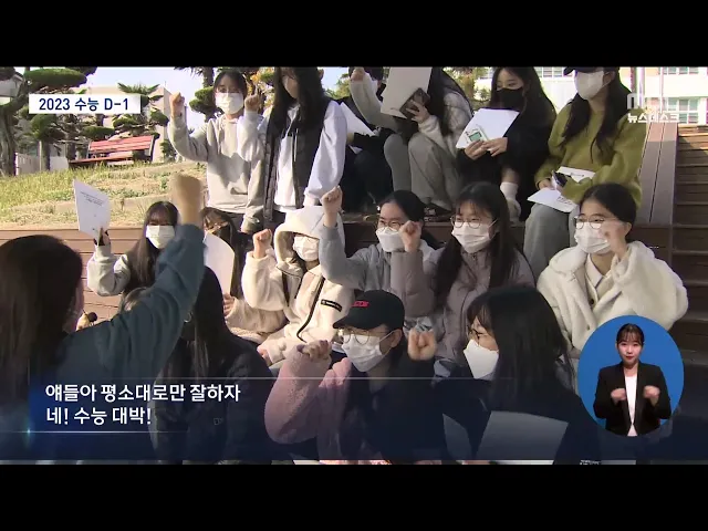 ◀ANC▶ 2023학년도 수능이 하루 앞으로 다가왔습니다. 학생들은 그동안 열심히 준비를 해 왔던 만큼 모두 좋은 결과가 있기를 바랐습니다. 양정은기자가 취재했습니다. ◀END▶ 수능을 하루 앞둔 오늘, 학교 운동장에 수험생들이 모였습니다. 수험표를 나눠주는 선생님도, 수험표를 받은 학생들도 모두 좋은 결과가 있기...