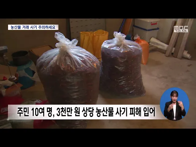 ◀ANC▶ 수확철인 요즘 농촌지역에서는 농산물 거래 사기 사건이 잇따르고 있습니다. 경찰은 농산물 사기 주의보를 발령했습니다. 양정은 기자가 취재했습니다. ◀END▶ ◀VCR▶ 함평군 대동면의 한 농촌마을 지난달 말, 마을이장 손정기씨 집에 자신을 유명 식자재 회사 직원이라고 소개한 50대 남성이 찾아왔습니다. ...