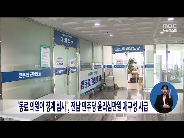 민주당 전남도당의 징계 기구인 윤리심판원을 현역 지방의원을 배제한 채 재구성해야 한다는 지적이 나오고 있습니다. 민주당 전남도당의 징계 기구인 윤리심판원은 변호사와 활동가 등 모두 9명의 위원으로 구성돼 있는데, 현역 전남도의원이 3명이 포함돼 있어 동료 의원에 대한 엄격한 판단이 가능할 지 의문이 제기되...
