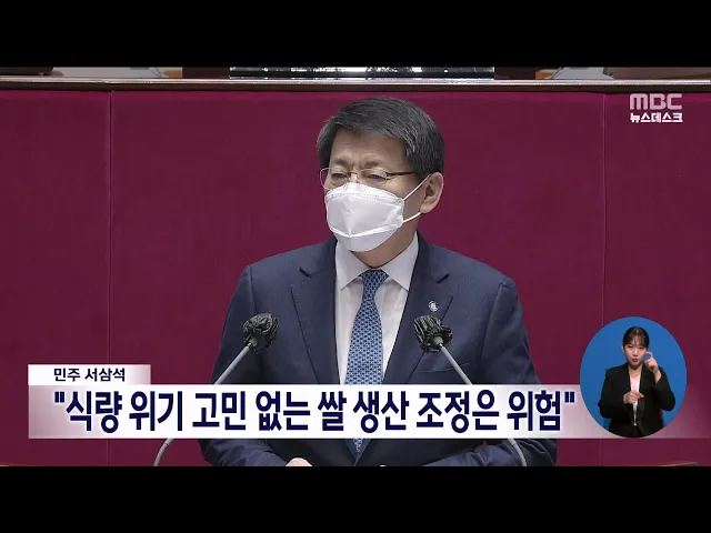 민주당 서삼석 의원이 정부의 쌀 생산 조정에 대한 우려를 나타냈습니다. 국회에서 열린 내년 예산안 회의에서는 쌀 생산조정을 전제로 한 1천7백1억 원의 예산이 의결됐는데, 서 의원은 식량 위기 경고가 계속되는 상황에서 자급률에 대한 고려 없이 이뤄지는 쌀 생산조정은 위험하다고 지적했습니다. 또 전국 3천134곳의 ...