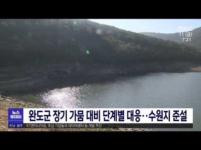 소안도와 금일도, 넙도에서 제한급수가 시행되는 가운데 완도군이 장기가뭄에 대비한 단계별 대응을 실시합니다. 완도군은 장기 가뭄 대책 1단계로 이달말까지 급수선과 대형 관정을 통해 수원지의 용수를 보충하고, 물탱크를 설치해 생활용수를 공급합니다. 또 2단계로 수원지 준설과 마을단위 중형관정 개발사업, 해수담...