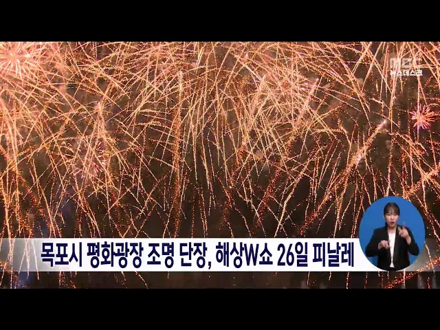 목포시가 겨울철 관광객 볼거리를 위해 평화광장 거리를 단장했습니다. 목포시는 평화광장 앞 상가 가로등 사이와 바닷가 인도 가로등 사이 각각 150미터 구간에 전구를 설치해 야간 경관을 개선했습니다. 목포시는 오는 26일, 올해 마지막 해상W쇼를 진행한 뒤 크리스마스 이브와 12월 31일 특별공연을 준비 중입니다.