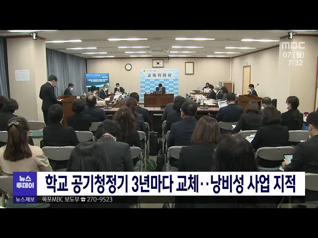 전라남도교육청이 학교 공기청정기를 3년마다 교체해 예산 낭비란 지적이 제기됐습니다. 박형대 전남도의원은 행정사무감사에서 2019년 각급 학교 교실에 설치한 공공청정기를 3년 만에 폐기하고 새제품으로 교체했다며 일반적인 전자제품 임차 기간이 5년인 점을 감안하면 예산 낭비와 함께 환경오염을 초래한다고 주장했...