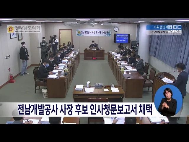 전라남도의회가 장충모 전남개발공사 사장 후보자에 대한 인사청문보고서를 채택했습니다. 도의회는 LH에 32년간 재직한 후보자가 공기업 운영과 경영 혁신에 대한 경험과 전문성을 갖췄다고 본 반면, 재산 형성과정의 특혜 등 도덕성과 준법성 등이 미흡하고 개발공사의 주요 사업에 대한 이해와 지역 기여도 또한 부족하...