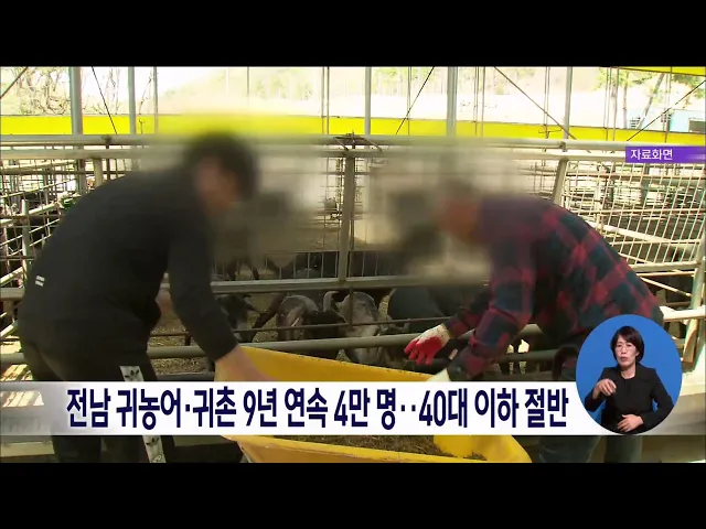 전남 농어촌에 이주하는 인구가 늘고 있는 가운데 연령도 낮아지고 있습니다. 전라남도에 따르면 지난해 귀농과 귀어, 귀촌 인구는 3만6천여 가구, 4만6천여 명으로 9연 연속 4만 명 이상을 기록하고 전체 54%가 40대 이하 청년층으로 나타났습니다. 전라남도는 귀농어, 귀촌인 유치를 위해 서울에 지원센터를 개설하고 농...