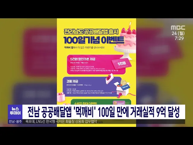 전라남도가 운영하는 공공배달앱 '먹깨비'가 출시 100일만에 가맹점 4천 4백 곳을 확보하고 거래실적 9억 원 달성했습니다. 전라남도는 소상공인의 소득 증대를 돕고 소비자들에게 외식비용 절감 등 혜택을 제공하기 위해 이용자 8천여 명에게 선착순으로 할인 쿠폰을 제공할 예정입니다.