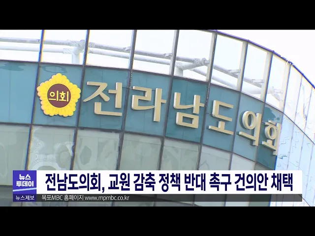 전라남도의회는 '교원 정원 감축 반대 촉구 건의안'을 채택했습니다. 전남도의회는 "정부 계획대로라면 지역 학교 323곳 가운데 86%의 학교가 교사를 1명씩 줄여야 해 교육의 질이 떨어질 수 밖에 있다며 지역 여건과 미래 교육에 대비하는 다양한 교육 수요를 고려하지 않은 결정이라고 지적했습니다.