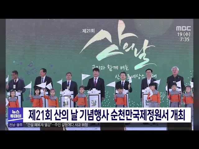 산림청이 주관하는 제21회 산의 날 기념행사가 순천만국제원에서 열렸습니다. 산림청과 전라남도는 산림 르네상스 비전 선포와 2023 순천만 국제정원박람회 성공 퍼포먼스를 펼쳤습니다. 산의 날 기념행사와 함께 개막한 대한민국 산림박람회는 오는 23일까지 이어집니다.