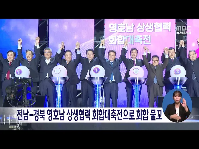 그동안 교류가 뜸했던 전라남도와 경상북도가 '영호남 상생협력 화합대축전'을 통해 상생의 무대를 연출했습니다. 어제(11) 경북도청 소재지인 안동에서 열린 영호남 화합대축전에서는 국립의과대 설립 등 공동현안 해결에 함께 대처하자는 비전선언문과 함께 양 도가 국가균형발전을 위한 지방시대 개막에 함께 노력하기...