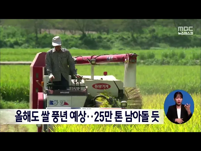 올해도 쌀농사 풍년이 예상되면서 국내 쌀 소비량보다 25만 톤 가량 초과 생산될 것으로 예상됩니다. 농협RPC 광주전남협의회에 따르면 올해 쌀 예상 생산량은 지난해보다 2만 톤 감소한 386만 톤이며 신곡 수요량이 361만 톤에 이른 점을 감안하면 25만 톤 정도가 남을 것으로 보입니다.