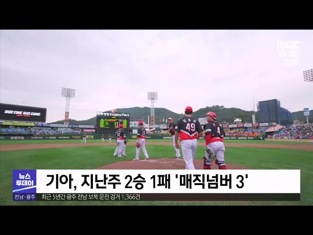 ◀ANC▶ 기아 타이가즈가 가을 야구까지 매직넘버를 3으로 줄이며 절대적으로 유리한 위치를 차지했습니다. 남은 5경기에서 3경기만 이기면 자력으로 가을 야구 초대권을 거머쥐는데, 뒤쫓고 있는 NC의 기세도 만만치 않아 방심은 금물입니다. 한신구 기자의 보도입니다. ◀VCR▶ 경기 초반 승기를 잡는 집중타 .... (10/...