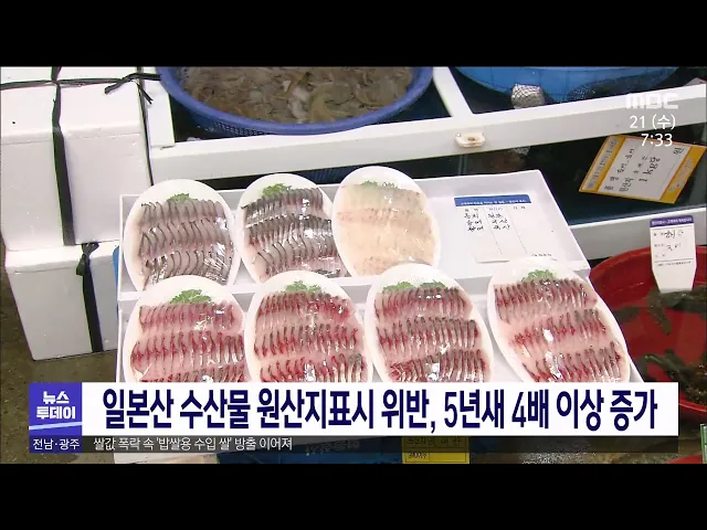 일본산 수산물의 원산지 표시의무 위반 사례가 5년새 4배 이상 증가한 것으로 나타났습니다. 일본산 수산물의 원산지 표시의무 위반 건수는 2017년 55건에서 지난해 230건까지 증가했으며, 최근 5년간 전체 수산물 원산지 표시의무 위반 5천766건 가운데 634건이 일본산이었습니다. 민주당 신정훈 의원은 일본 정부의 후쿠...