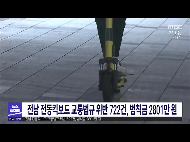 지난해 5월 도로교통법 규제가 강화된 뒤 전남에서 적발된 전동킥보드 교통법규 위반은 722건인 것으로 나타났습니다. 위반 유형별로 안전모 미착용이 가장 많았고, 무면허 운전, 음주운전 등의 순으로 나타났으며 법규 위반으로 부과된 범칙금은 2천8백만 원으로 집계됐습니다.