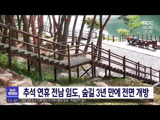 코로나19 사회적거리두기 등으로 출입이 제한됐던 전남지역 임도와 숲길이 3년 만에 한시적으로 개방됩니다. 전라남도는 오는 12일까지 성묘객 이용 편의를 위해 임도 2천 894km, 숲길 4천 181km를 개방하고 숲길과 연계한 자연휴양림과 산림욕장 등 산림휴양시설도 정상 운영할 방침입니다. 명품 숲길과 휴양림 등 자세한...