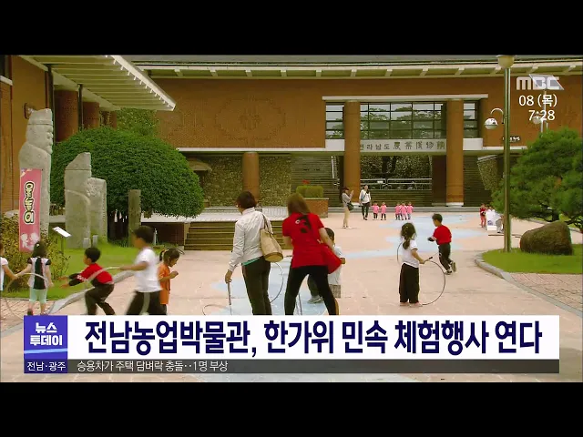 전라남도농업박물관은 민족 대명절인 추석을 맞아 박물관 일원에서 한가위 민속 체험행사를 개최합니다. 첫 날인 9일은 미리 신청을 받아 초가마당에서 송편빚기 체험행사를 진행하고, 농경문화체험관에서는 투호를 비롯한 윷놀이와 고리걸이, 제기차기 등 민속놀이와 봉숭아물들이기 체험장 등이 운영됩니다.
