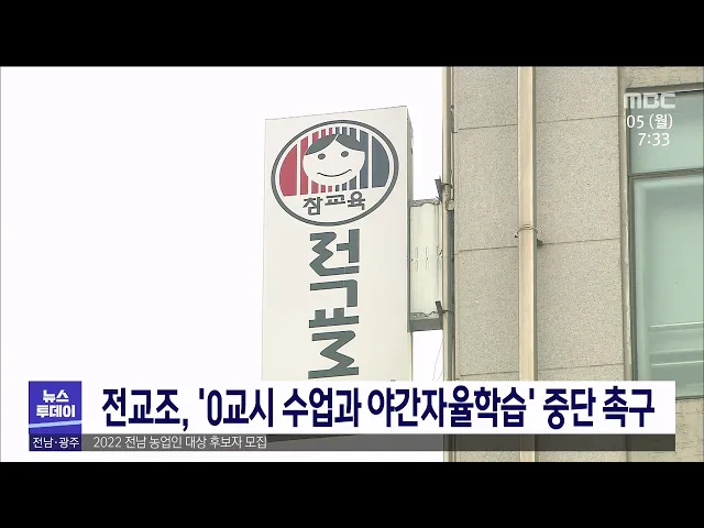 전교조 전남지부는 김대중 전남교육감이 '공부하는 학교로 만들겠다'고 제시한 이후 '0교시 수업'과 '야간자율학습'이 등장하고 있다며 당장 중단해야한다고 촉구했습니다. 전교조는 이번 사태가 김대중 교육감의 교육정책에 의해 나타난 현상인 만큼 더 많은 피해가 발생하기 전에 전라남도교육청의 정책 기조를 전면 수정...