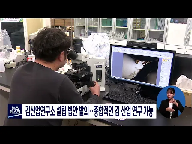 국가 주도의 김산업 연구소 설립을 위한 김산업법 개정안이 발의됐습니다. 개정안을 대표 발의한 김승남의원은 국내 김 연구는 국립수산과학원 해조류 연구센터의 종자 연구에 국한돼 있다며 생산과 가공, 유통까지 아우르는 종합적인 김산업 연구소 설립이 필요하다고 밝혔습니다. 대표적인 K 푸드로 자리매김한 김은 지...
