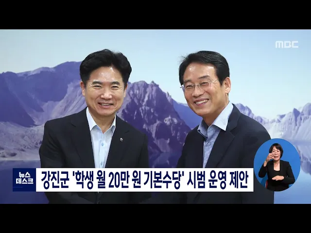 강진군 '학생 월20만 원 기본 수당' 시범 운영 제안