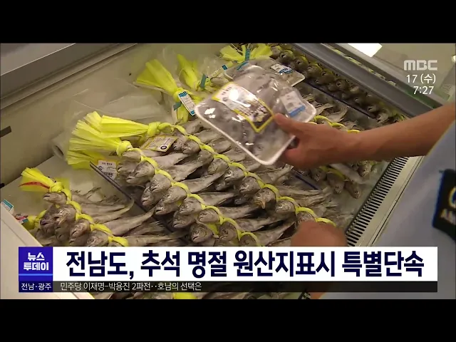 전라남도가 추석 명절을 앞두고 다음달 8일까지 원산지표시 위반행위에 대한 특별단속에 나섭니다. 점검 대상은 도내 농축수산물 가공, 판매업소 50여 곳으로 주요 단속 품목은 추석 명절 수요가 늘어나는 배, 굴비 등입니다. 전라남도는 일선 시군, 도내 관계기관과 함께 원산지 거짓표시와 혼동표시 행위, 원산지 미표시 ...
