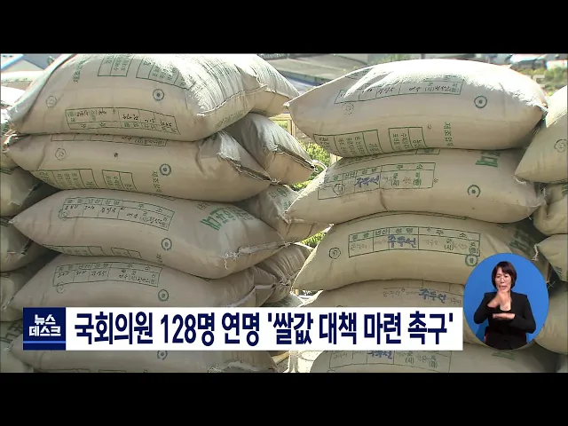 더불어민주당 소속 128명의 국회의원들이 한 목소리로 정부의 책임있는 쌀값 안정 대책마련을 촉구했습니다. 이들은 산지 쌀값 하락과 농협 재고 문제가 올해 신곡 수매에까지 영향을 미칠 수 밖에 없고 이같은 쌀값 추세라면 올해 1조 4천 7백억 원의 농가 소득 감소가 우려된다고 지적했습니다. 이에따라 쌀 문제의 심각...