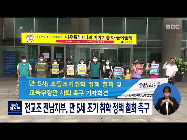 전교조 전남지부, 만 5세 조기 취학 정책 철회 촉구