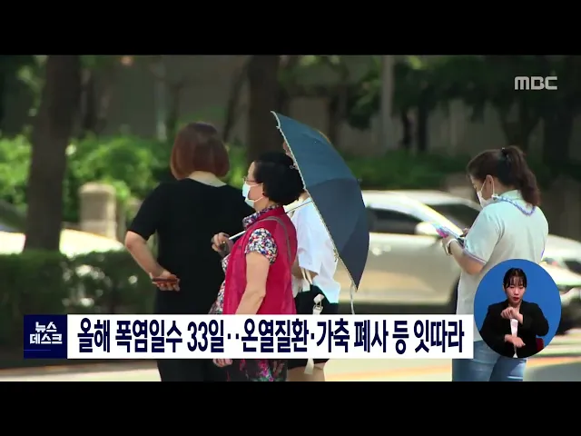 올해 폭염일수 33일..온열질환*가축폐사 등 잇따라