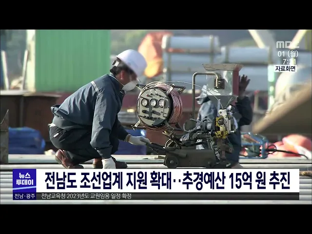 전라남도는 추경예산 15억원을 확보해 조선업계에 지원합니다. 지원 내용을 보면 신규 취업한 노동자의 이주 비용으로 2백명에게 5개월간 월 25만원을 지원하고, 사업주에게는 고용유지 지원 부담금을 지원하는 등 복지, 훈련 지원 사업에 집중됩니다. 전남지역 조선업계는 지난 2천13년 이후 최대 실적이 예상되지만, 인...