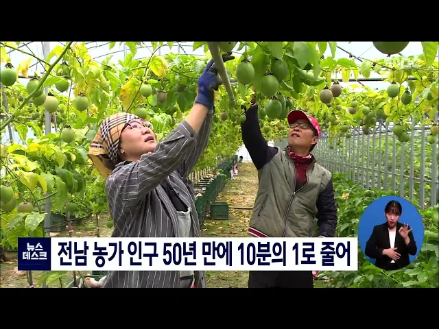 전남 농가 인구가 50년만에 10분의 1로 줄어든 것으로 나타났습니다. 호남지방통계청이 발표한 '농림어업총조사로 본 전남 농어업 변화상'에 따르면 2020년 전남 농가 인구는 28만 명으로 50년 전인 1970년의 267만 8천 명과 비교했을 때 89.5%인 239만 8천명이 감소했습니다. 또 2020년 기준 전남 농가의 고령인구 비중은 ...