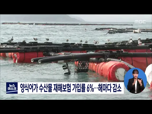 양식어가 수산물 재해보험 가입률 6%..해마다 감소