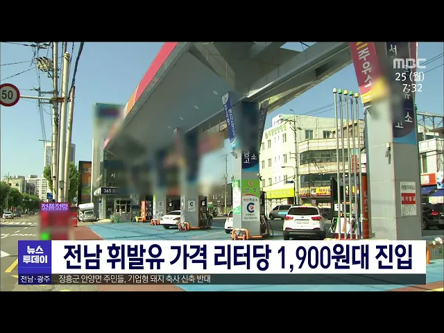 2천 원 선을 유지하던 전남지역 휘발유 가격이 유류세 인하 폭 확대 등의 효과로 1900원대로 하락했습니다. 한국석유공사 오피넷에 따르면 전남지역 주유소에서 판매하는 평균 휘발유 가격은 리터당 1985원으로 지난 17일 보다 66원 떨어졌습니다. 경유 가격도 일주일전보다 55원 내렸지만 여전히 평균 2천 원 수준을 유지...