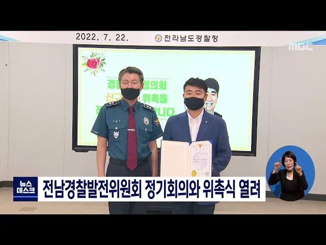 전남경찰청은 오늘 청사 7층 남도마루에서 2022년도 경찰발전위원회 신임 위원 위촉식과 함께 정기회의를 개최했습니다. 오늘 회의에서는 전남 경찰발전위원회 신규 위원 6명에 대한 위촉장 수여식이 열렸으며 위원들은 민,관 협력체제 강화를 통해 안전한 전남과 행복한 전남을 만드는데 앞장 설 것을 다짐했습니다.