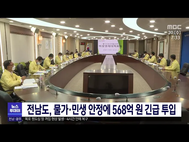 지난달 전남지역 물가가 전년 동월대비 7.1% 오르는 등 가파르게 상승하고 있는 가운데, 전라남도가 비상경제대책회의를 열고 긴급 지원대책을 발표했습니다. 전라남도는 중소기업*소상공인 재정 안정망 구축에 173억 원, 면세유 인상액 일부 지원 등 농수축산물 가격안정에 298억 원 등 모두 568억 원을 투입해 분야별 안...
