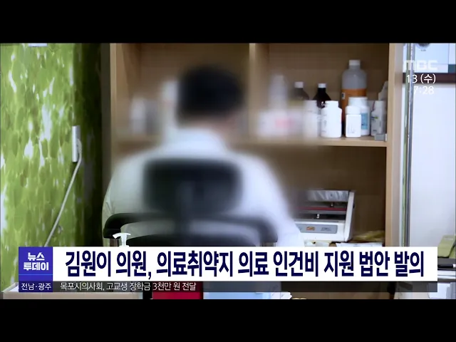 민주당 김원이 의원은 섬과 농어촌 의료취약지에 근무하는 의사 등의 인건비를 정부가 의무보조하도록 하는 법안을 대표발의했습니다. 김 의원은 정부가 고시한 의료낙후지역에 위치한 지역보건의료기관의 의사 등의 인건비는 의무적으로 지원해야 의료 격차를 해소할 수 있다고 지적했습니다. 의사가 없는 섬과 산간지역에...