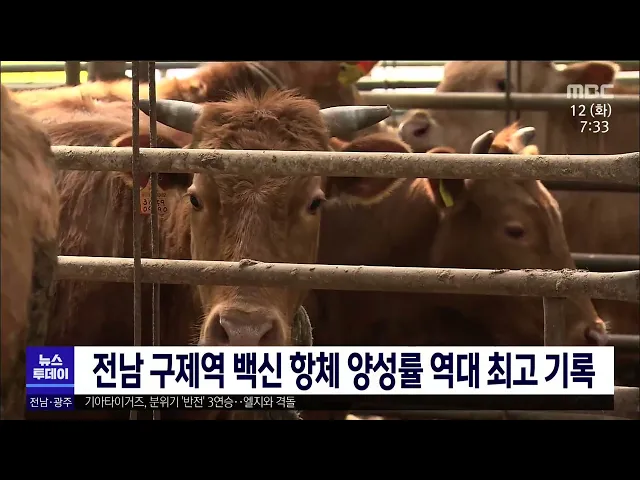 전남 구제역백신 항체양성률 역대 최고 기록
