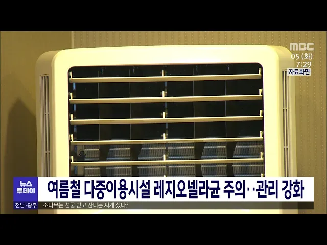 에어컨 사용이 늘어나는 여름철을 맞아 냉각탑수와 건물의 급수시설 등 오염된 물 속의 균을 통해 감염될 수 있는 레지오넬라증에 대한 주의가 당부됩니다. 전라남도보건환경연구원은 3급 법정감염병인 레지오넬라증이 50세 이상 고령자와 흡연자 등에게 많이 발생하고 있다며 도내 다중이용시설을 중심으로 검사를 강화하...