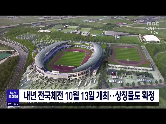 제104회 전국체육대회가 내년 10월 13일부터 일주일 동안 개최지인 목포시를 비롯한 22개 시군에서 치러집니다. 또 전국 장애인체육대회도 내년 10월 25일부터 엿새 동안 열리며 전남을 상징하는 대회 구호와 엠블럼, 마스코트도 확정됐습니다. 전라남도는 내년 전국체전 일정에 차질이 없도록 주경기장인 목포종합경기장 ...
