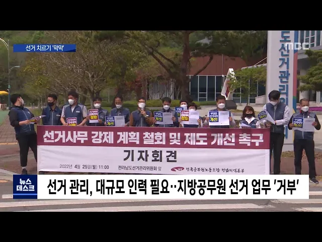 ◀ANC▶ 지방선거가 다가오면서 선거관리위원회의 걱정이 커지고 있습니다. 공직선거는 수많은 인력이 필요한데, 그동안 희생해 왔던 지방공무원들의 선거업무 거부 움직임이 거세지고 있기 때문입니다. 양정은 기자가 취재했습니다. ◀END▶ ◀VCR▶ 담벼락에 붙은 선거벽보는 공직선거 본 선거의 시작을 알립니다. 집...