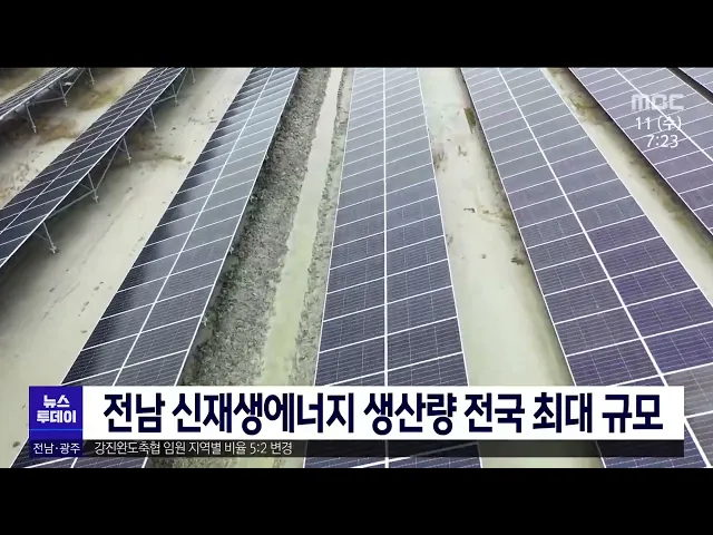전남의 신재생에너지 생산량이 전국에서 가장 많은 것으로 나타났습니다. 광주전남연구원이 통계청 자료를 분석한 결과 2018년 기준 전남의 신재생에너지' 생산량은 346만 toe(티오이)로, 석유 346만 톤의 열량에 해당하는 에너지를 만들어낸 것으로 나타났고 이는 전국 생산량의 19%에 이르는 수치입니다.