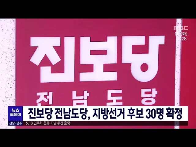 진보당 전남도당이 6.1 지방선거 후보자 서른 명을 확정했습니다. 진보당은 당원 총 투표를 통해 민점기 전남지사 후보를 비롯해 광역의원 선거에 6명, 기초의원 선거에 23명의 후보를 냈습니다. 진보당 전남도당은 "민주노총과 농민회 활동을 통해 쌓아온 지지기반으로 민주당 일색의 독점정치를 끝내겠다"고 밝혔습니다.