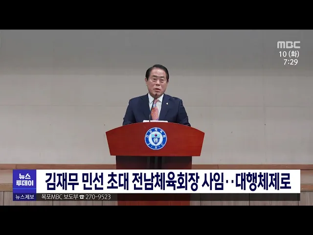 김재무 민선 초대 전남체육회장이 지방선거 출마로 사임했습니다. 김재무 전 전남체육회장은 임기 중 체육회 법인화 추진과 체육인 복지 향상, 지역 체육 인프라 확충 등에 노력했다는 평가를 받고 있습니다. 전남체육회는 차기 민선 2기 회장을 뽑는 올해 말까지 최기동 회장 직무대행체제로 꾸려집니다.