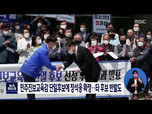 전남 370여 단체로 구성된 전남교육회의가 민주진보교육감 단일후보로 장석웅 전남교육감 예비후보를 확정하고, 지지를 선언했습니다. 전남교육회의는 앞서 3명의 전남교육감 예비후보에게 공모에 참여할 것을 요청했지만 장 후보만 단독으로 응모했으며 투표결과 88.6%가 찬성했습니다. 이에 대해 김대중 예비후보는 "교...