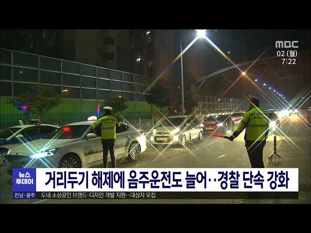 5월 한 달 동안 전남 22개 시군에서 매주 전 지역 음주단속이 실시되는 등 단속이 강화됩니다. 전남경찰청은 사회적 거리두기 해제로 인해 모임이 늘고, 새벽 술자리가 지속될 것으로 예상되는 만큼 일제 단속을 강화한다고 밝혔습니다. 실제로 지난달 도내 음주운전 단속 결과 지난해 같은 기간보다 15퍼센트 많은 4백84...