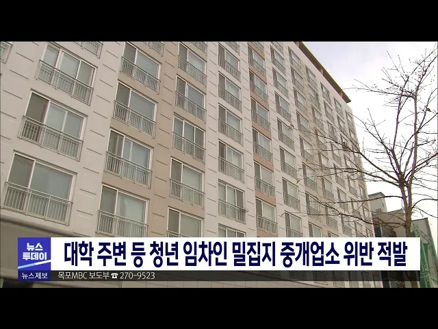 전라남도는 도내 대학 주변과 원룸, 오피스텔 등 청년 임차인 밀집지역의 부동산 중개업소를 집중 점검해 15건의 위반 사항을 적발했다고 밝혔습니다. 주요 위반 사항으로는 요율표 등 갱신된 공제증서 게시 의무를 위반하거나 공인중개사사무소 간판 표시 위반 등이었으며 적발된 중개업소들은 해당 시군을 통해 행정처분...