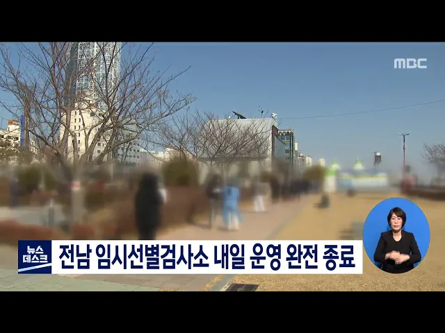 코로나19 감염병 등급 하향조정에 따라 전남지역 임시선별검사소 운영이 내일 완전 종료됩니다. 전남지역 임시선별검사소들은 특히 연초 오미크론 유행상황에서 PCR검사 48만7천 건, 신속항원검사 32만5천 건을 실시해 확진자 조기 발견을 위해 대응했습니다.