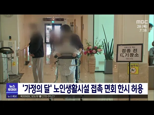 코로나19 확산 방지를 위해 노인복지생활시설에서 장기간 제한됐던 접촉 면회가 어버이날을 앞두고 오는 30일부터 다음달 22일까지 한시 허용됩니다. 전라남도는 접촉 면회 기준은 입소자와 면회객의 연령과 확진 여부, 접종 상태에 따라 달라질 수 있으며 사전 예약을 통해 1인실이나 독립 공간에서 방역수칙 준수하에 가...